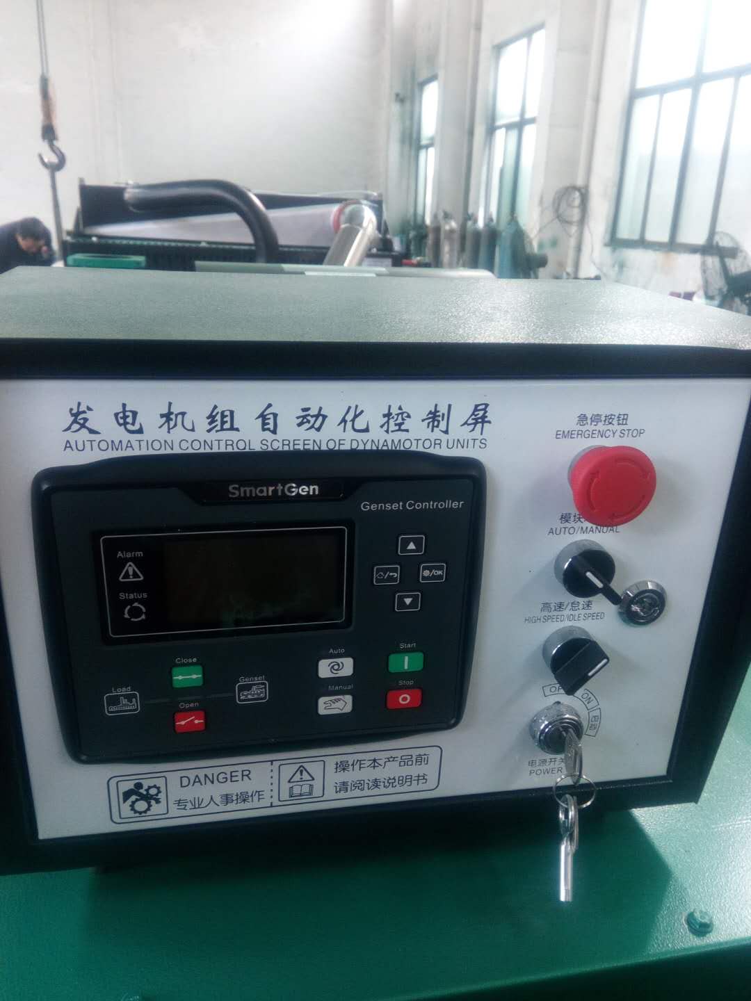 9、將“應急”開關置于“試機”位置,柴油機應能自動啟動,但主控屏的開關不能“合閘”。試機成功后,開關從“試機”位復原為“應急”狀態位,應能使柴油機怠速運轉,3min后停機。